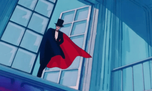 Like many first episodes, there’s a bunch of stuff that’s brought up yet completely ignored for the following 199 episodes – Sailor Moon defeats the monster by crying, setting off some kind of… sonic boom or something. It’s a little like Superman flinging that plastic S off his chest in Superman 2 – who knows where it came from or where it went. Thankfully Sailor Moon finally stops being so pathetic and actually kicks some ass, using her tiara as a death-frisbee to defeat the monster. A bloke in a top hat who calls himself Tuxedo Kamen turns up before then, but really doesn’t do anything other than throw a rose. I think it was intended that he look cool, but as much as I love the guy, he can be an unlikable douche.