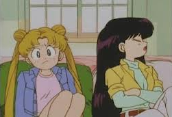 Although Rei may pretend to be more mature and collected than Usagi, it doesn’t take much for Usagi to drag Rei down to her level. As they say, what we dislike most in others is what we see in ourselves. Or whatever.