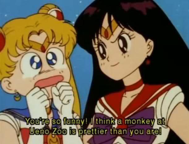 This doesn’t even phase the girls. Despite the gravity of the situation, the episode just lingers on “humorous” in-fighting between Mars and Moon, and it’s so painfully animated that I could barely bring myself to watch. Jadeite makes some sexist remarks and the girls shout back about GIRL POWER a good number of years before the Spice Girls stole it, which is actually pretty cool, but it can’t undo all the other mistakes.