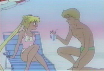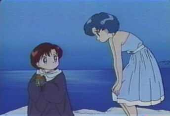 Watching the girls play on the beach is great – it’s essentially an opportunity for Rei and Ami to physically abuse Usagi under the guise of a game. Poor little Sakikio has been forbidden to talk to the girls, however, and must watch moodily from the cliffs.