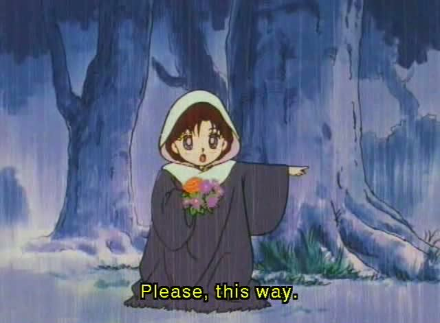 The hotel Rei booked seems to take the girls through a… haunted forest. Huh, that’s weird, I could’ve sworn it was a really nice day just a second ago… With thunder and lightning overhead, Usagi freaks out, revealing that thunder is her greatest fear. So childish, but it fits her ridiculous character so well, and won’t be the last time we see her exhibiting her Astraphobia either.