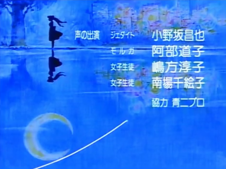 The first ending sequence used in Sailor Moon is as stylistic as its first opening, the strange Russian-inspired bizarre-a-thon set to Moonlight Densetsu, but rather less obviously so. It’s modest, simple and leaves much of the screen swamped in shadowy blue. If this is was a practical consideration, to leave plenty of room for the credits, then it was fortuitous, because it creates a strange, moody and fantastical atmosphere to the sequence.