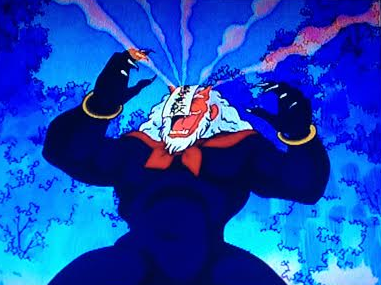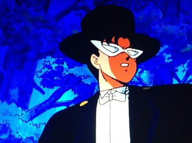 Although Zoisite manages to get the crystal out of Grandpa, Tuxedo Kamen turns up for a half-hearted chase through the forest for the Rainbow Crystal, but loses it anyway. He doesn’t even think of returning to help out with the now-transformed Grandpa.