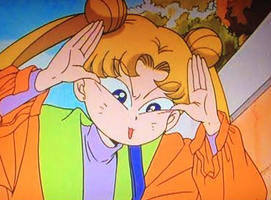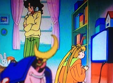 Ami and Makoto have finally figured out that it was Rhett Butler the Moon Stick was reacting to, which I wouldn’t normally bother mentioning except that I love Usagi’s “gaming” face and wanted an excuse to include it, so here it is: