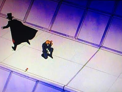 Laughing in his victory, Zoisite is struck by a rose and drops the crystal, to which Tuxedo Mask lightly jogs over too, then runs off. All this happens in about 4 seconds and that’s all he does in the entire episode. Jesus, Tux.