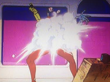 Sailor Moon’s retaliatory attack is a jar of… something… talcum powder, maybe, I have no idea why this is in a hair salon, but it works unexpectedly well.