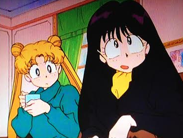 It’s a symbol of love or junk. Listening to the song, Usagi thinks about Tuxedo Kamen again, when Rei gives up on trying to escape and sits down next to her. Usagi shows actual sensitivity for once and appologises if she made Rei feel bad – she has sort of stolen her boyfriend after all.