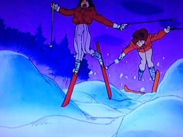 Kunzite’s latest “plan-already-in-motion” is a skiing competition a few hours travel away from Tokyo. Miraculously, the Sailor Senshi fall for this when on a skiing holiday at Yuichiro’s cabin. Although she can barely ski, Usagi enters the contest, and is doing surprisingly well, when a monster turns up and traps her and Rei. Left alone with time to talk, the girls chew the fat and get out all their emotional baggage, which sounds a lot less exciting than it turns out to be.