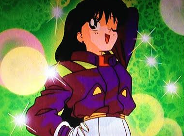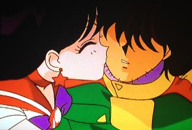 Sailor Mars gets all hot under the collar for Yuichiro (he’s so lucky) and rewards his bravery (stupidity) with a kiss on the cheek.