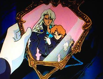 He throws a couple of lame Black Roses at the girls, but they miss by a mile, which gives time for Mars to give a soppy speech about how he used to love Sailor Moon. As unlikely as it is, this bullshit actually seems to get through to Endymion, and his black rose briefly flashes red once more.