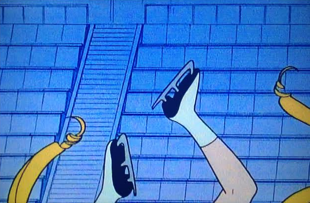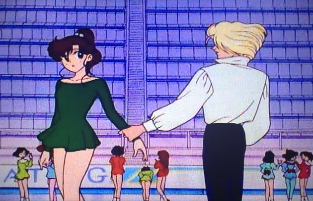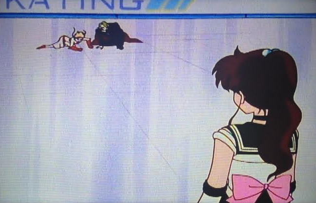 Oh well. Evil-Good Tuxedo Kamen pretty much teaches Sailor Moon to skate in the middle of battle. He throws her up into the air and she nails a triple axle!