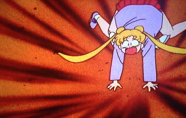 Her attempts to replicate a double axle jump ends in disaster, of course. All TV shows need legal warnings for Tsukino Usagi not to try anything at home ever.