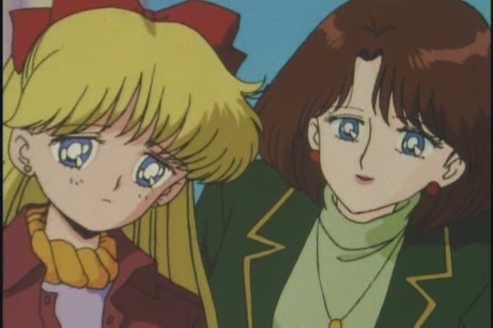 We’re immediately suspicious of this woman because a) she’s foreign b) she knows that Minako is really Sailor V and c) she’s blatantly asking Minako to put her in touch with Sailor Moon and looks evil while she does it.