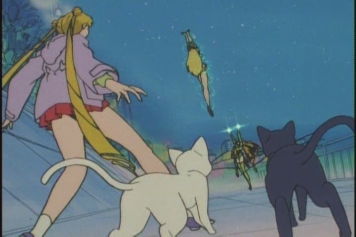 Sailor Venus is finally saved by the arrival of Usagi, Luna and Artemis. You’d think that Usagi would transform, save Venus, and save the day, but, weirdly, no. Luna decides that it’s a better idea to have Usagi steal a boat.