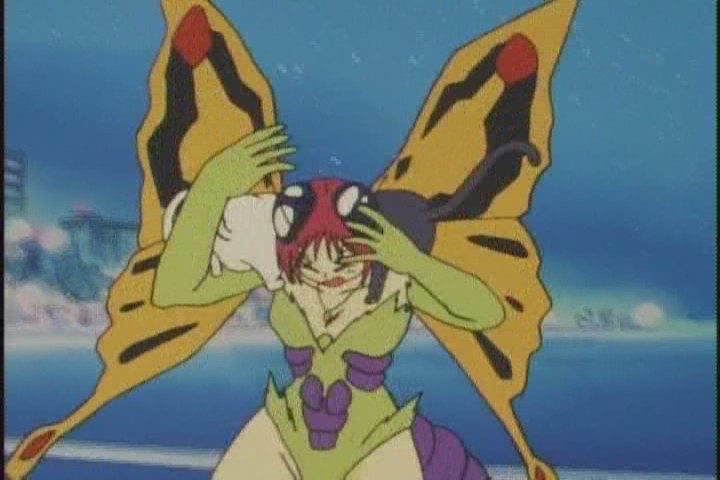 Minako gets all emotional (WOMEN AM I RIGHT) and runs out the door. Katarina motions to follow her, but Kunzite appears, tell’s Katarina to kill Minako and morphs the police woman into a giant butterfly thing called Papillon.
