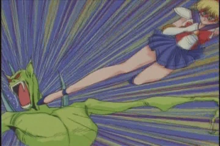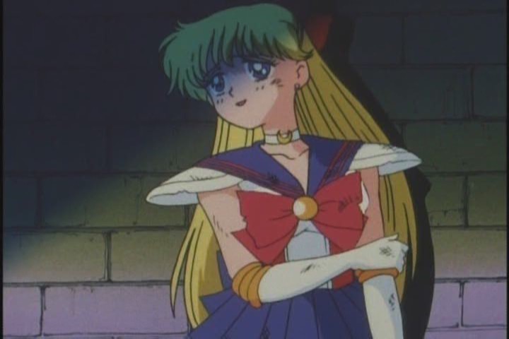 Sailor V appears, kicks Greeny in the jugular with a flying kick (it’s awesome) and becomes best friends with Katarina.