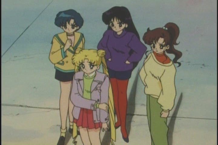 Ami, Makoto and Rei are using the arcade cabinet that Luna used to use as a communication device, before she belatedly found out that it was Artemis she was talking to via a voice modulator. Pretty sure he should have been made into violin strings for that bit of subterfuge.