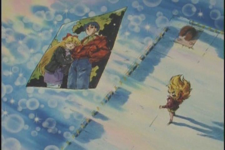 Despite it being the midst of battle, Sailor Venus decides to check the inside of the pendant. You’d expect the photo to be of Katarina and Allan, the salacious pair, but no – it’s also of Minako, altogether, one happy dysfunctional threesome.