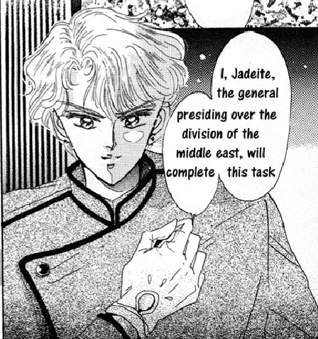 We also have the introduction of the Dark Kingdom and Jadeite in particular, who describes himself as the “General presiding over the division of the Middle East,” which may seem superfluous, but I’m going to bring up each of the General’s idiosyncrasies, since I find their differences between manga and anime forms extremely intriguing.