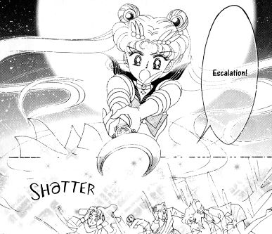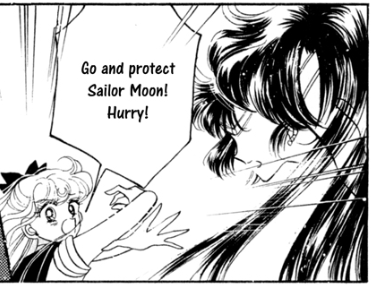 In the anime, his frequent sacrifices for Usagi were a little… 1-dimensional. He protects, that’s what he does, he gets all stabbed in the back for fun. In the manga, however, Tuxedo Mask feels completely powerless. All he can do is look up at Sailor Moon in admiration. He finally has a chance to save her instead, and he doesn’t think twice. That’s great characterisation there.