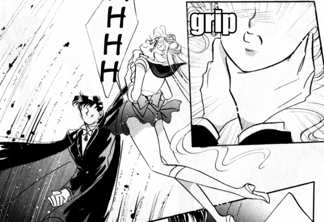Endymion gets pretty violent with Sailor Moon, but the scene is so far removed from how they dealt with it in the anime that’s it’s not nearly as affecting.
