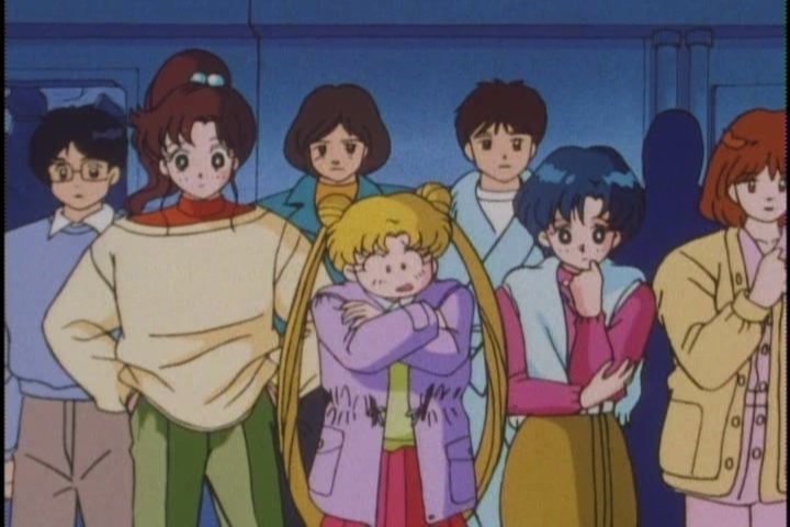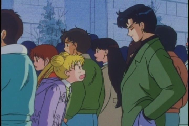 In the busy crowd are Rei, Minako, Ami, Makoto and Usagi. What a coincidence! Usagi bumps into the two from her school, Ami and Makoto and, although none are well-acquainted anymore (super depressing), the three seem to feel strangely nostalgic…