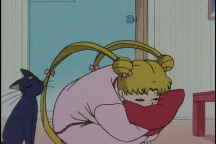 The episode opens with Usagi’s mother dragging her out of bed. Despite it being a day off school, mother is determined that Usagi shall not spend it asleep, and steals her bed covers. This is child cruelty, right here. Usagi should have yelled “You’re not my REAL MOTHER. She’s DEAD and lives on the MOON.”