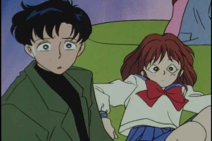 The motion of the vehicles knock Usagi over into Seijuro’s arms at this point (UGH.) and everyone’s rather shocked by this, even Mamoru, who doesn’t look too happy. Interesting development…