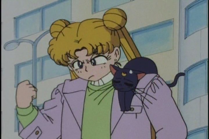 As if formed from her thoughts (or from a lazy writer’s hand), Mamoru turns up in time to warn her not to bully a cat just because she’s alone. He’s straight into dick mode – although I agree that bullying Luna is a little mean.