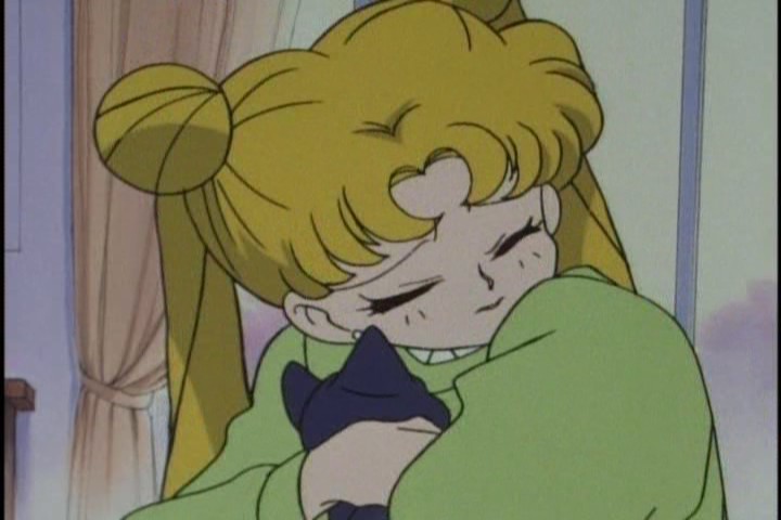 The episode ends at Usagi’s house with Shingo and Papa getting all their cuts and bruises treated by Mama. Next to this silly sight is an emotional Usagi, hugging Luna very tight, upset that she can’t use her tiara, and that Moonlight Knight isn’t Mamoru after all.