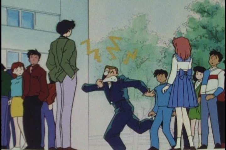 Although she could easily kill this dude, Mamoru, ever a stalwart condescending prig, comes to her rescue. Just as we think there’s going to be a throw-down… the guy makes a stupid face and runs away.
