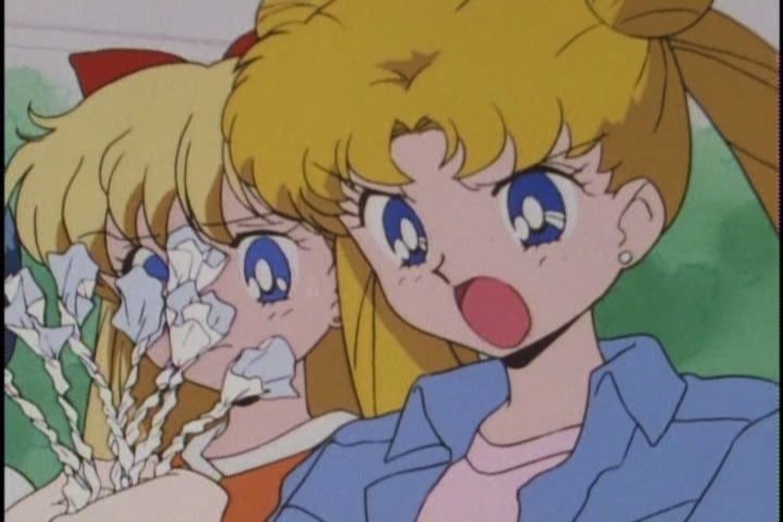 After everyone else but the Senshi have left, Usagi vents a bit of frustration that she’s being cuckolded right before her very eyes. It’s quite impressive to watch her rip apart a towel, actually.