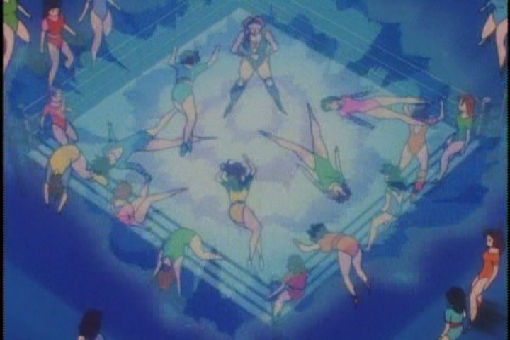 Saying that, it’s funny, it looks good, there’s more skin here than on a walrus, by no means a dud. And, of course, any episode where Rei gets a new move is OK by me.