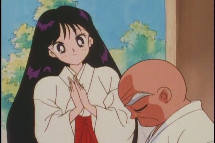 The Senshi are all having a nice chat while on break from working at the shrine. Rei is obviously still furious about her Grapndpa, but Usagi, displaying insight I would not have thought possible, cottons on that the female coach (Koan) was pretty suspicious.