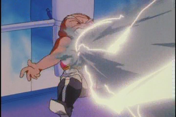 Dumble’s next named attack is the Double Lariat, which is. like, a generic energy blast. This time is Grandpa’s turn to take an attack for Rei (about time) and he’s convieniently knocked out.