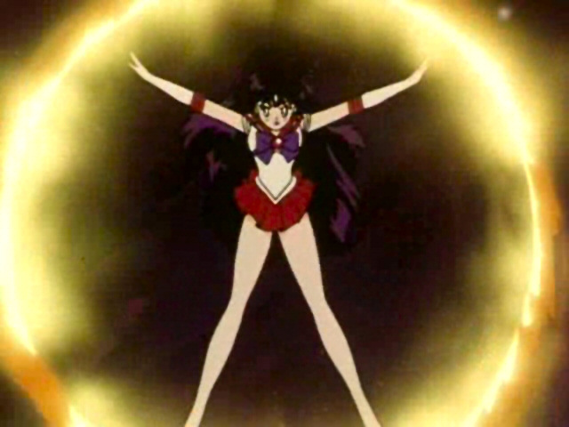Sailor Mars uses Fire Soul against Koan’s Dark Fire. It looks great seeing the two attacks meet, but Dark Fire seems to have the edge.