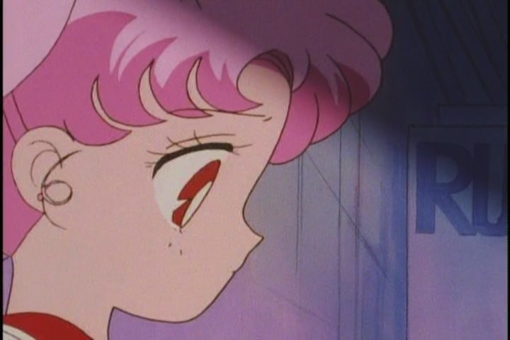 Chibi-Usa, meanwhile, is right beneath the girls in an alley. The music here is a rather depressing theme they’ve come to use for loneliness, and it works brilliantly here. Seriously, I love this scene. It’s not particularly special, but everything about it pops out.