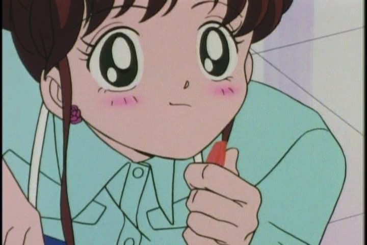 Yes, it may seem the height of arrogance to have to “let” Usagi help her, but hey, this is a stupid kid. Usagi’s showing a patient, motherly side to herself. For once.