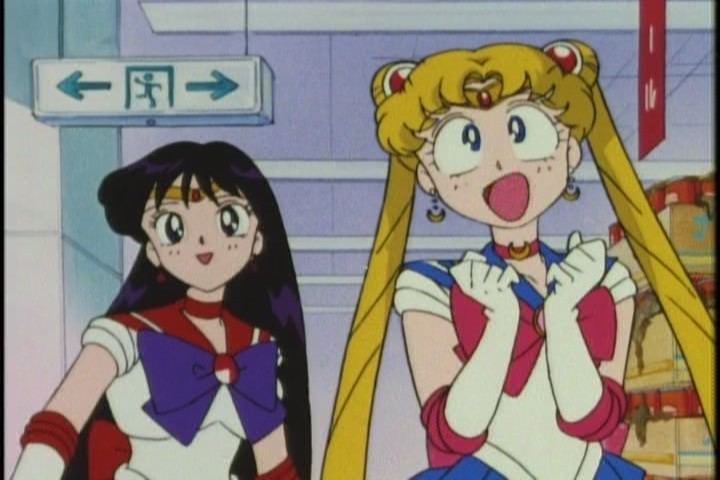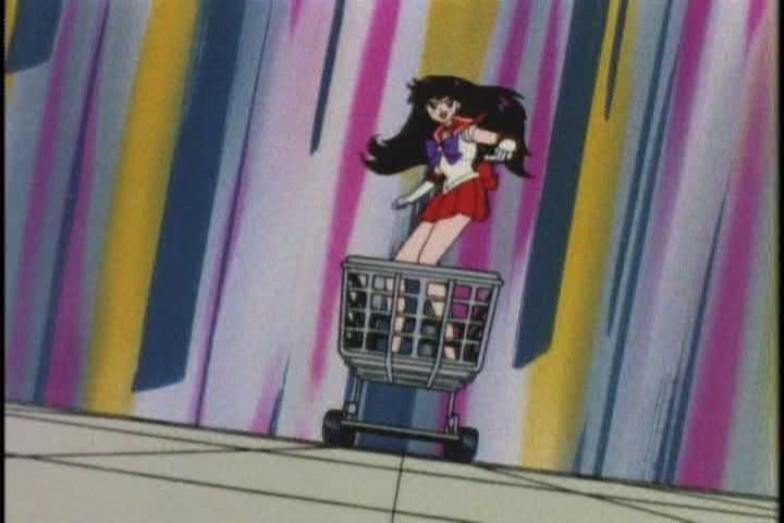 And then Sailor Mars gets in on the action too, much more impressively by riding a goddamn shopping cart like she’s on Jackass. This episode is very entertaining.