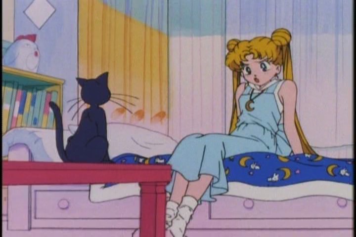Usagi finally transforms, having noticed that she’s under attack, but Luna goes in for the first attack. Seriously, she looks so pissed off today. It’s great.