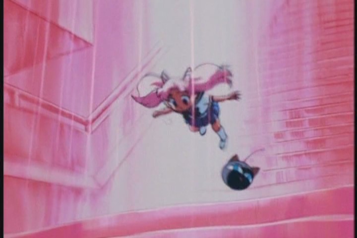 Luna-P seems to roll in the way of Berthier, who trips over ridiculously (she falls brilliantly), and then gets the added indignity of having Chibi-Usa run over her back.