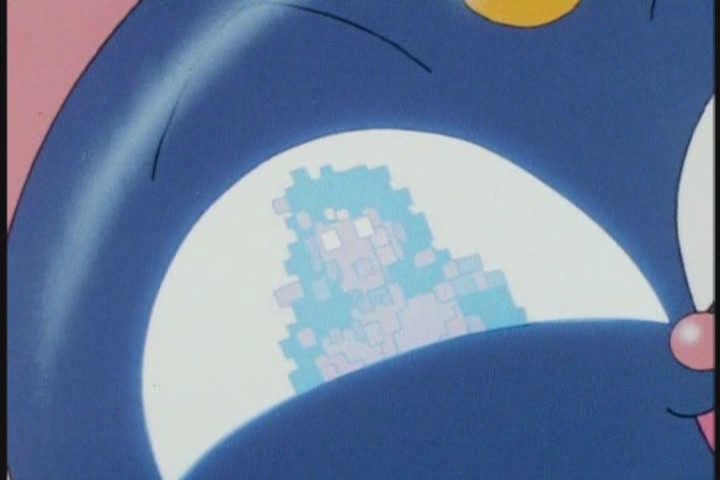 Chibi-Usa, crying, calls her contact on Luna-P again, the one she calls “Puu”, which I refuse to make any jokes about. The music is great by the way, this big dramatic piano-strings piece that really adds drama to scenes in the series to come.