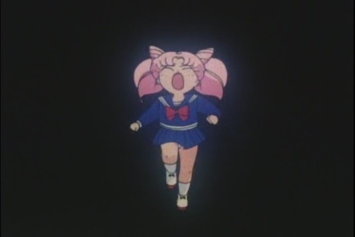 We open with Chibi-Usa running for her life in the darkness. Her obvious fright, at odds with her usual bravado, as well as her exhaustion, and the sense that something is chasing her, tells us that this may be a slightly dark episode.