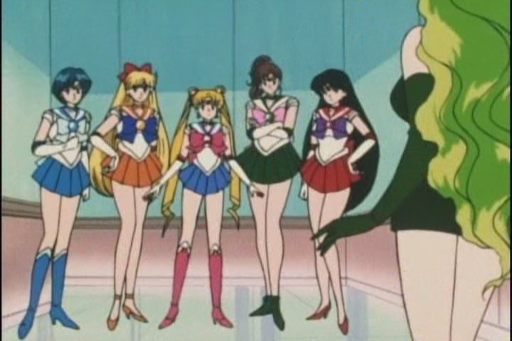 Thankfully we get a full 5-Senshi transformation scene, which eats up about 3 minutes of air time, so there’s less crap to wade through.
