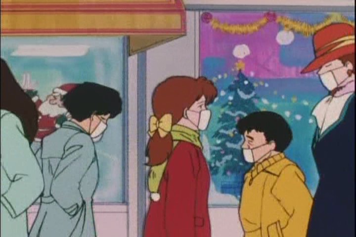 Right from the first scene, we see that this is a seasonal, opportunistic episode. It came out in late December 1993 after all. There are Christmas decorations up, more then I’ve ever seen in Tokyo in the festive period.