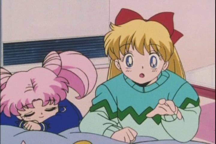 Usagi remembers the warnings from her friends, and tries to get Minako only to look after Chibi-Usa, but Minako steamrolls right over her objections. And now she has a little helper too.