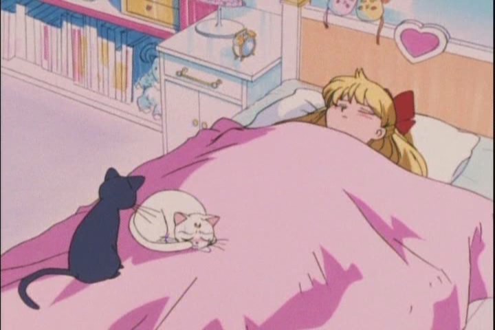 The episode ends with Minako’s position reversed – she finally got the real flu, along with Artemis, and it’s Usagi’s turn to “nurse” her, with Chibi-Usa in tow.