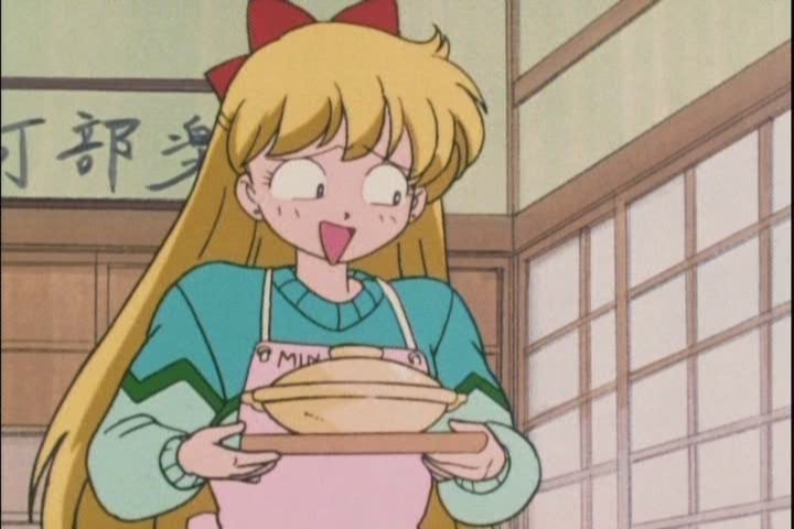 After managing to avoid eating Minako’s food, Usagi eventually convinces them just to go away and do some housework. This goes as well as you’d expect.
