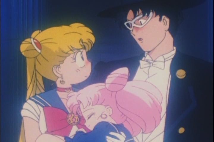 Sailor Moon and Tuxedo Kamen learn that they’re Chibi-Usa’s parents