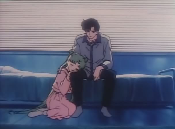Usagi rather sweetly asks Mamoru if he’s lonely, to which he responds, even more sweetly, “I’m not lonely anymore… You’re my family, Usako.” At which point my heart melts and I take back every single mean thing I ever said about the douchebag.